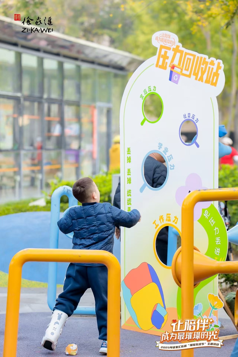 在昨天的徐家汇街道“璀璨生活节”主题活动现场,一个看上去只有七八岁的小男孩背着书包独自来到“儿童跳蚤市集”,掏出10元钱从同龄的小摊主手中买了一个盲盒橡皮,又用剩下的5元钱找零,给妈妈买了一只手工发夹。小摊主的妈妈接过钱,情不自禁地夸奖这个小顾客真是一个孝顺懂事的好孩子。本次“璀璨生活节”的主题是“让陪伴成为最璀璨的光”,希望倡导亲人之间、萌宠和主人之间等各种形式的陪伴,在组织一场暖心嘉年华的同时,在活动所在的乐山新村以及整个徐家汇社区营造出更温馨的氛围,而这只5元钱的发夹正折射出一道“璀璨的光”。