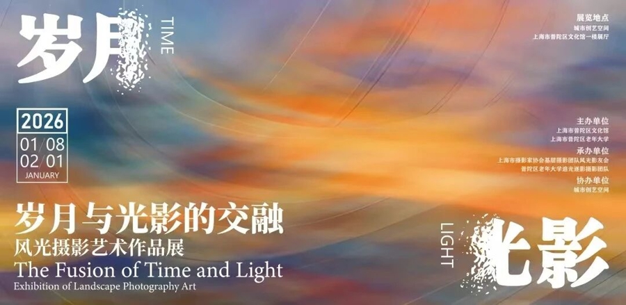 1月8日,“岁月与光影的交融——风光摄影艺术作品展”在普陀区文化馆开幕。本次展览作品从600多幅投稿作品中甄选而出,汇集了来自上海市摄影家协会风光影友会、普陀区老年大学追光逐影摄影团队的120幅精品力作。